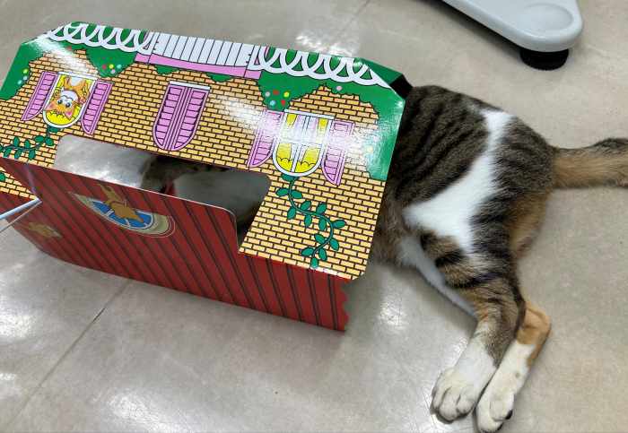どうみてもアレな猫のおもちゃを見かけたので購入しました。看護師の喜屋武(キヤタケ)です。斜めになったり崩壊したり楽しんでいただけてなにより。